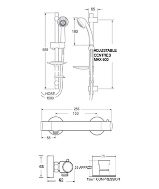 Deva Combi Bar Shower With Kit & Easy Fit Connectors – Combmef