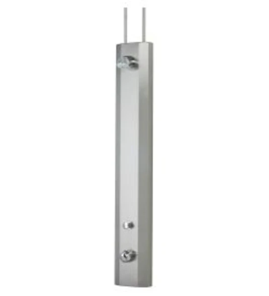 Pre-plumbed shower panel with integral adjustable TMV3 approved thermostatic mixing valve, push button timed flow control & vandal resistant shower head