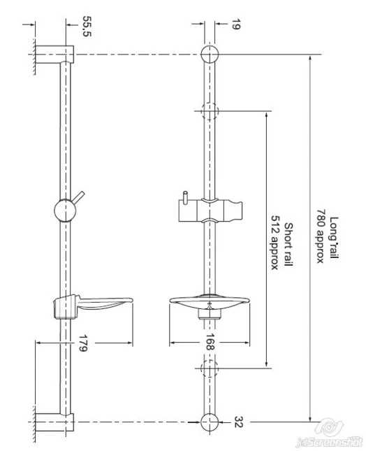This rail height can be adjusted between 512mm and 780mm due to the rail supports being adjustable.