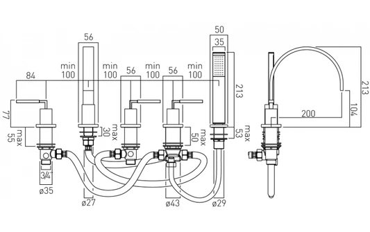 - 5 Hole bath shower mixer