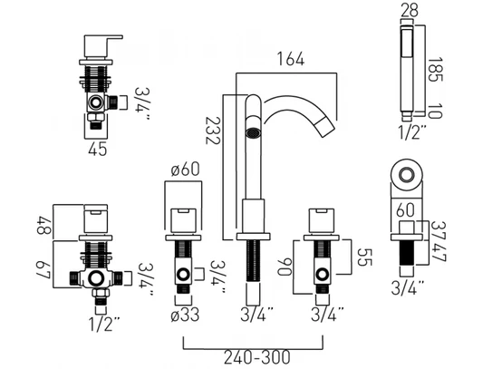 Vado 5 Hole Bath Shower Mixer Deck Mounted With Shower Kit – SEN-135-3/4-C/P