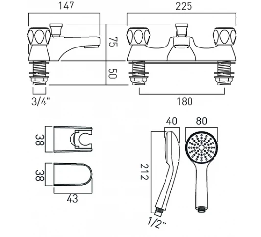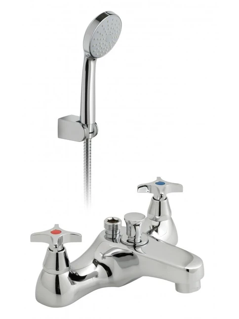 Vado Bath Shower Mixer Deck Mounted With Shower Kit – Cross Handle – AST-230/CD+K-C/P