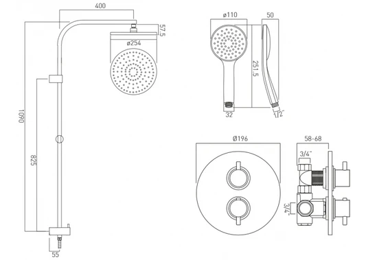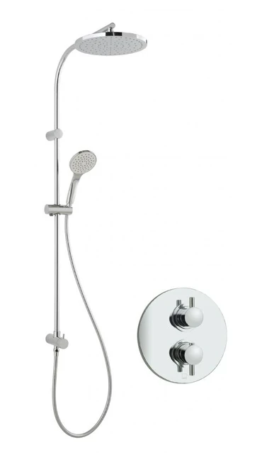 Vado Celsius Concealed 2 Handle Thermostatic Shower Valve With Round Back Plate Rigid Riser Shower Kit With Integrated Diverter 1.5 Bar – WG-CELBOXRO/RRK-C/P